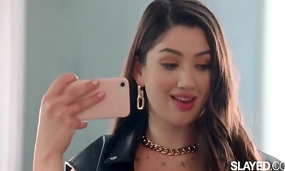 Cutie Renata Fox gives a blowjob and gets fucked rigid