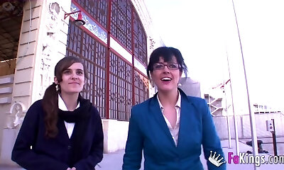 Pablo Ferrari has his fuckpole shared by Montse and Ainara