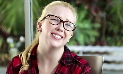 Czech hottie in glasses enjoys a huge black rod in her cunt
