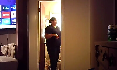 Kinky hidden cam movie of my own slim chick flashing her bum in the guest room