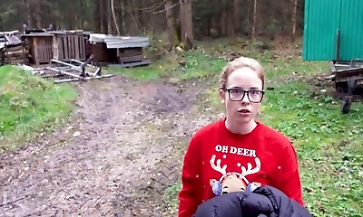 Bombshell redhead Penelope Sanps comes to a wild pervy outdoor porn audition and gets her pussy and mouth explored with director's pipe