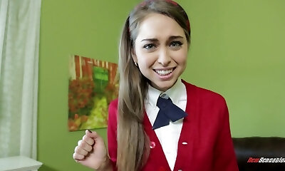Likable pigtailed cheerleader Gracie spreads legs to touch her clit just a bit