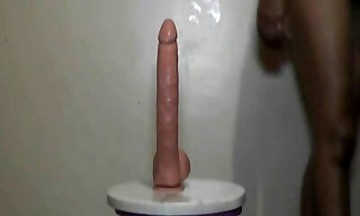 Ebony girl takes fat dildo in her pussy