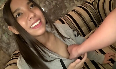 Innocent Japanese Student seduced for a blowjob by amateur BF