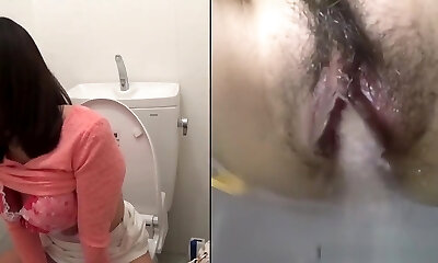 Married Woman Milking While Making An Unpleasant Sound In The Wc Of The Shop