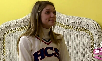 Blonde cheerleader needs to suck a monstrous dick before getting porked