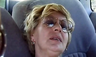 Slut first-timer granny in the car. Amateur