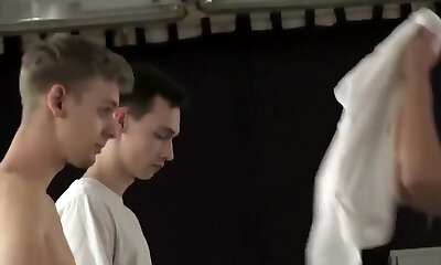 IR CFNM honies only in towels jerk dark-hued cock in 3some