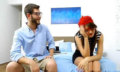Womanizer picks up young brunette Blue Starlet for his sex-hungry friend