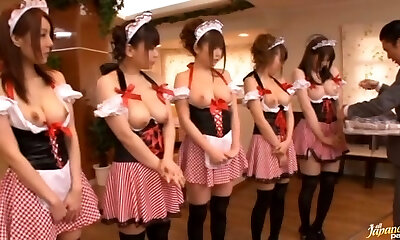 Five Japanese Babes in Costume with Large Orbs to Play With