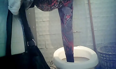 Spy Toilet Pissing Shaved Pussy Black Stockings Big Ass Big Tits Piss And Squirt