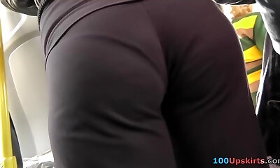 多汁的少女的背面在皮革裤子
