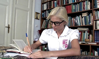 书呆子男女同校在图书馆探索最终得到铅垂